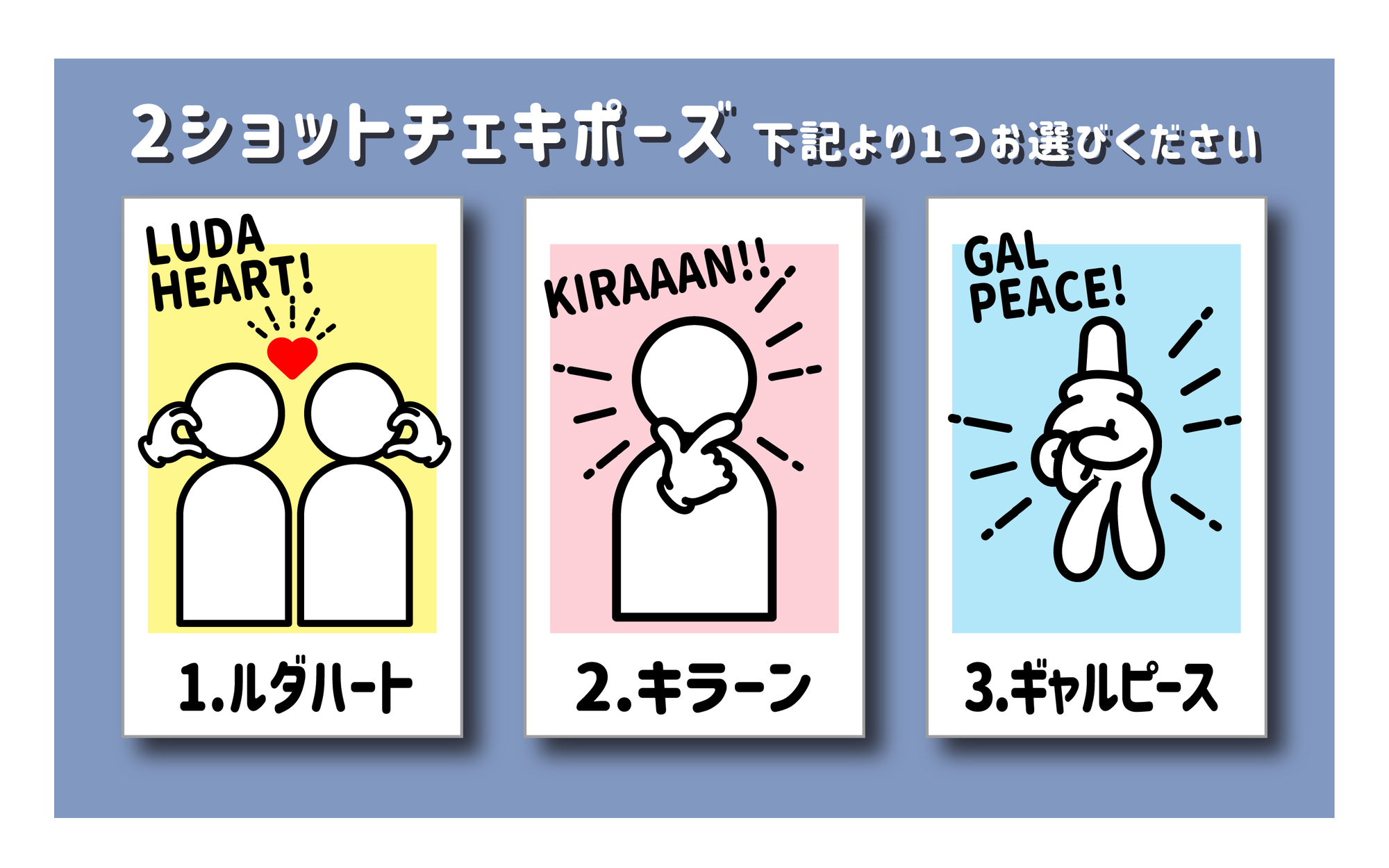 (ポーズ指定あり・1,ルダハート・2,キラーン・3,ギャルピースのどれかお一つお選びください)